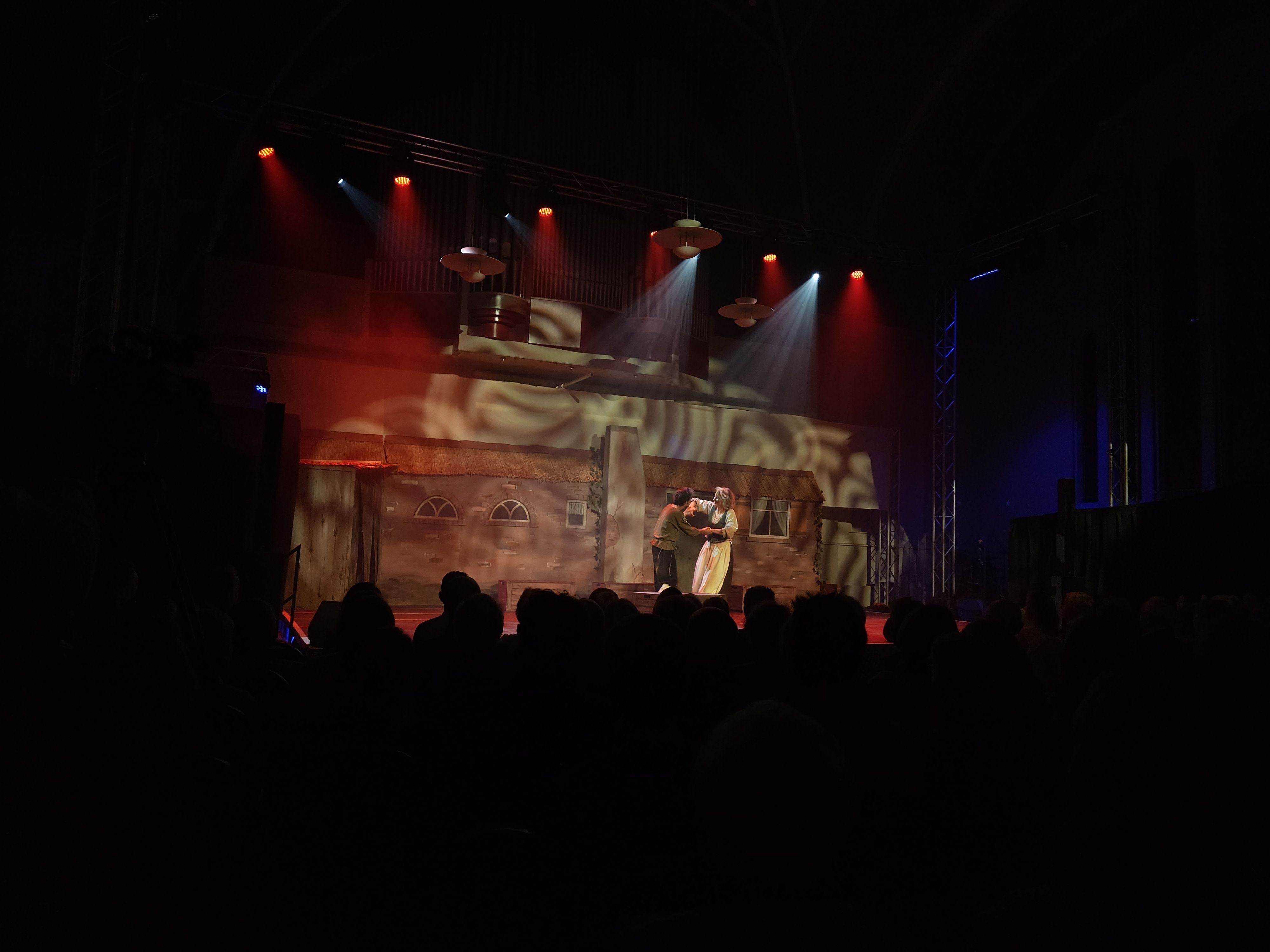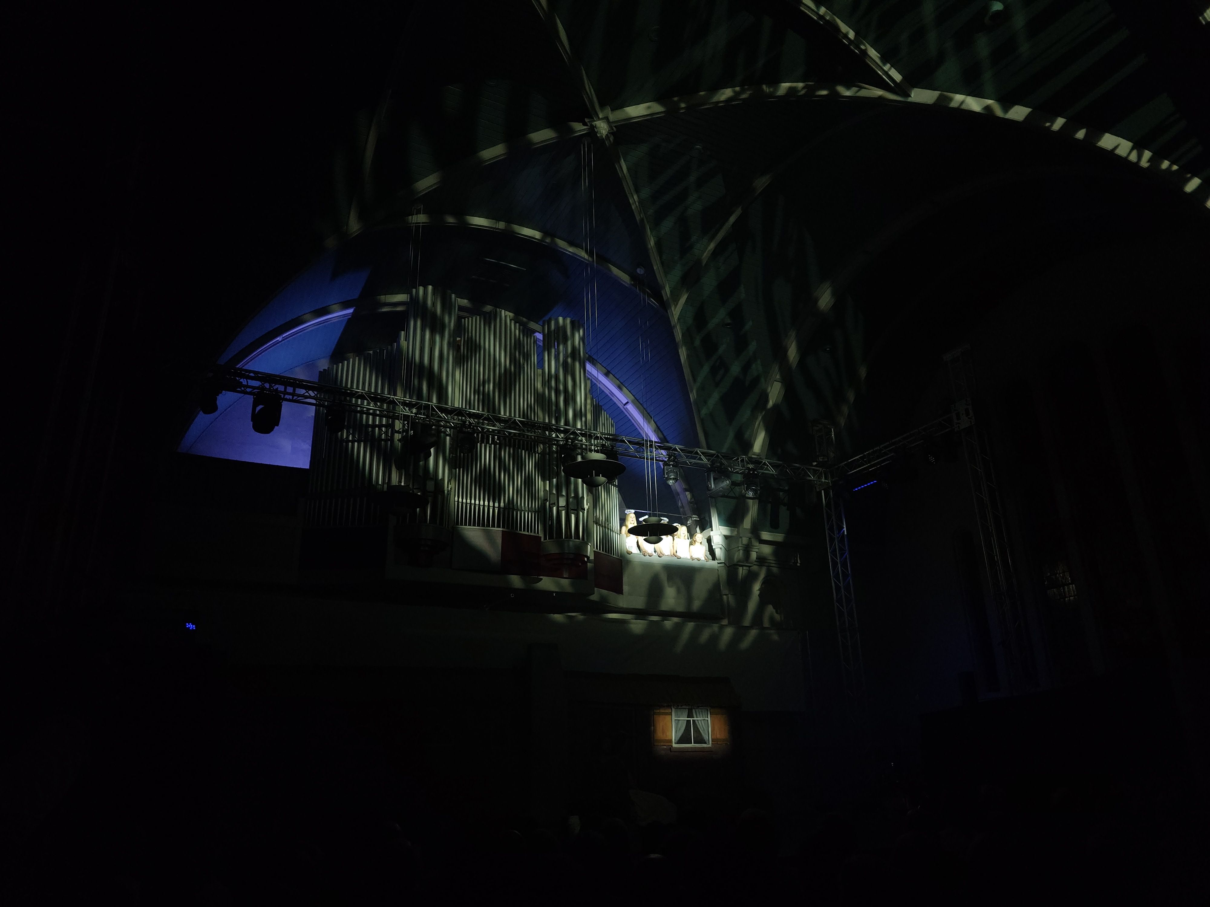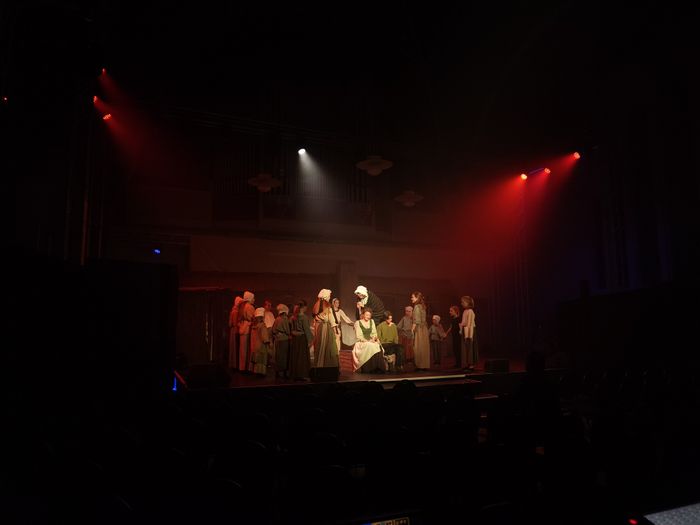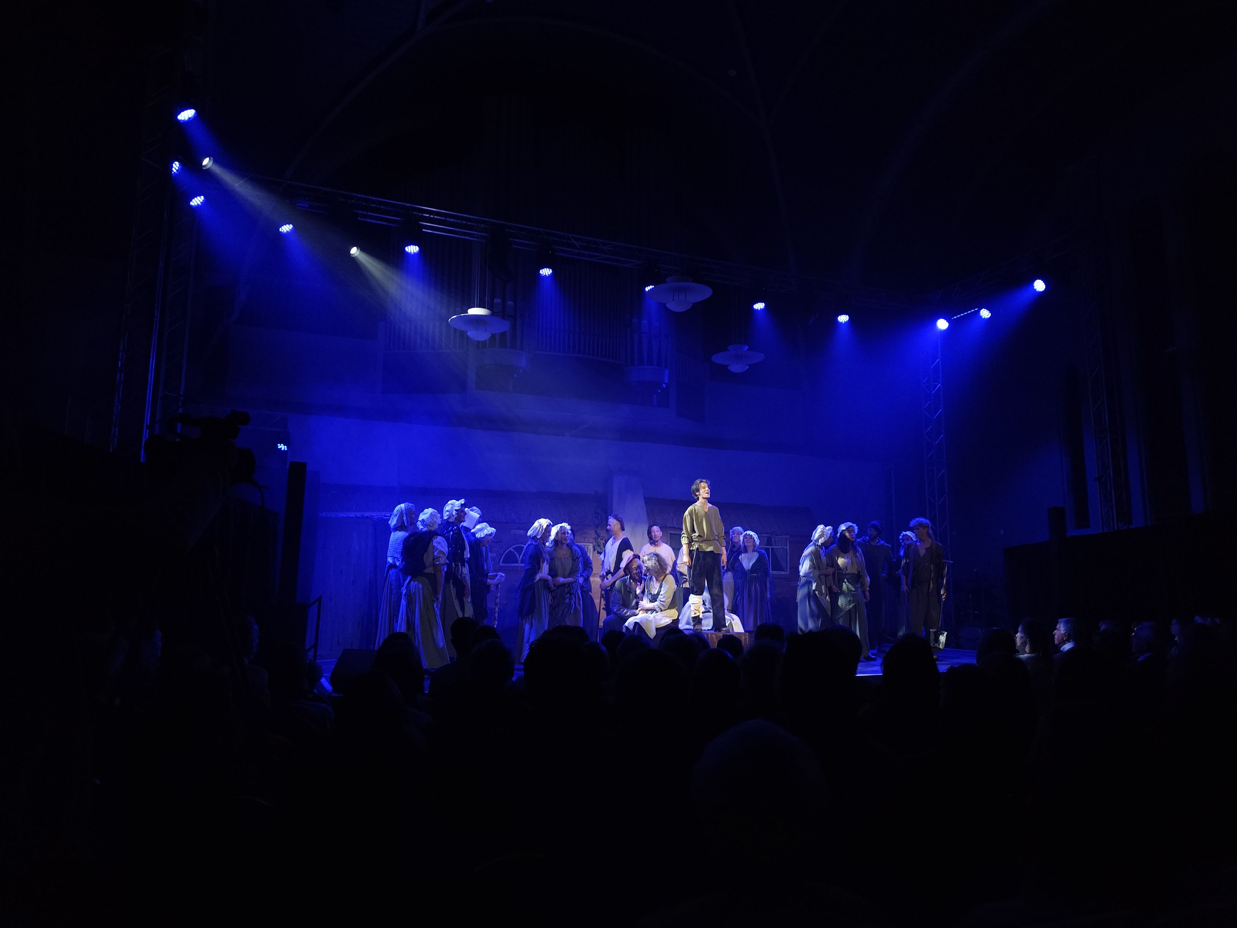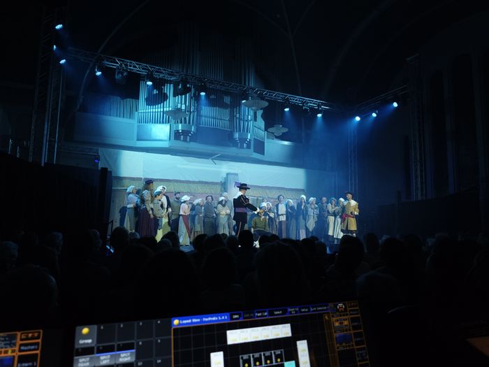 Emotive lighting design with tight limitations for a musical performed on location in a church.